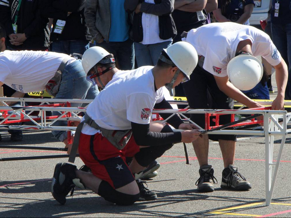 图一钢桥现场拼装比赛环节