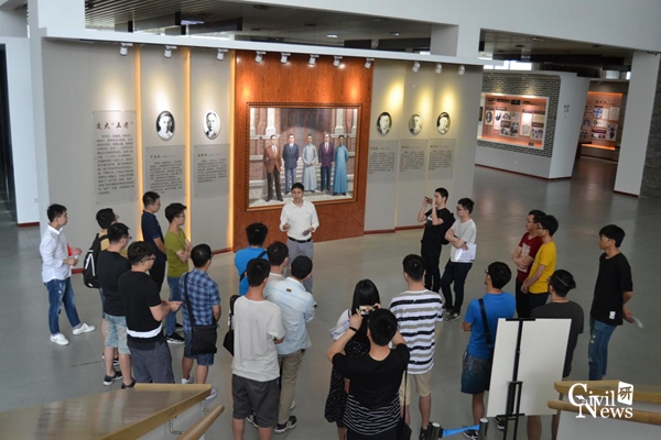 校史馆建设情况进行了简单介绍,随后团队同学在讲解员的带领下,详细参观了校史馆10个展厅:序厅、榆关始创、复校唐山、成就斐然、烽火薪传、迎接曙光、砥砺前行、创业峨眉、蓉城新篇、桃浓李郁灿若星河——交大力量。在讲解员的介绍下,了解了茅以升炸桥,林同骅自主研发飞机,母校的一件件苦难辉煌的事迹映入眼帘;茅以升、林同炎、黄万里、王梦恕等一批优秀的杰出校友面孔清晰展现于眼前。这个诞生于1896年的山海关北洋铁路官学堂(中国第一所工程高等学府),虽校名几经更迭,校址几度变迁,经受了战火、搬迁、地震的磨炼,仍然屹立不倒,薪火相传,给在场的师生们上了生动的一课。