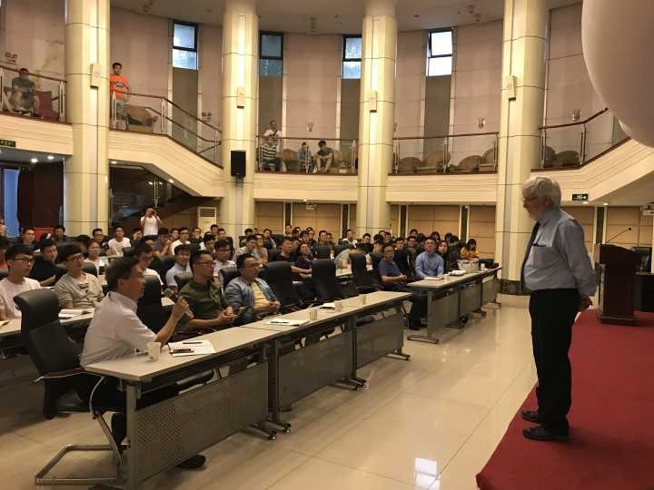 下午4:00,Rowe教授在镜湖宾馆多功能厅做了2017年的太沙基报告。报告题目为:“Protecting the Environment with Geosynthetics: Success and Challenges ”。报告详细阐述了Rowe教授以及他的团队多年在土工合成材料上面的实验和研究,十分精彩。Rowe教授风趣幽默,现场座无虚席,台上台下互动热烈。岩土系张建经老师和地环学院陈剑楠老师等师生积极提问,Rowe教授也一一解答。
