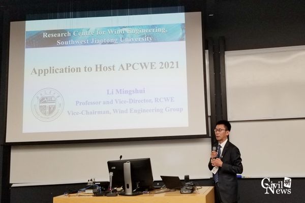 为了申办下届亚太风工程大会,风工程团队经过精心策划和周密筹备,派出了以李明水教授为领队的代表团(包括5名教师、9名博士研究生)出席由新西兰奥克兰大学承办的第九届亚太风工程大会。除我校之外,申办第十届亚太风工程大会的还有香港科技大学、日本京都大学。在亚太风工程大会执委会上,李明水教授代表学校做了精彩的申办报告,经执委会17名委员的两轮无记名投票,最终确定我校获得第十届亚太风工程大会的承办权,由廖海黎教授担任大会主席。