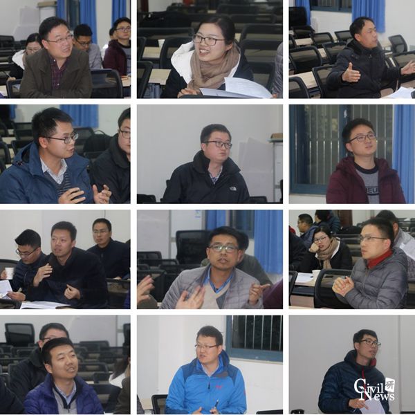 紧接着进入一起讨论环节,与会年轻教师们踊跃发言,干劲十足,纷纷表示对这次教师岗位聘任改革的支持,肯定了这次聘任改革对土木工程一流学科建设的重要性。章慧健、杨文波、叶华文、刘凯文、张锐、董唯杰、向活跃、程印、康阿真、王峰、张明金、周强、刘钰、胡辉、任东亚、许浒等十六位年轻教师各抒所见,从高水平论文分区、同一指标高质量替换、教学学时与工作量、提前超额完成指标、发明专利、支撑条件、平台使用、综合服务、如何促进成果最大化、35岁以后聘岗问题等方面提出了宝贵的建议。