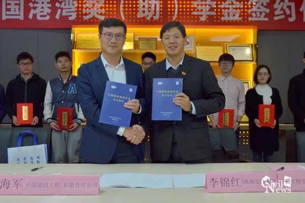 紧接着,李锦红副书记宣读了中国港湾奖助学金2015年度、2016年度获奖学生名单,孙海军副总经理为获奖学生颁奖。