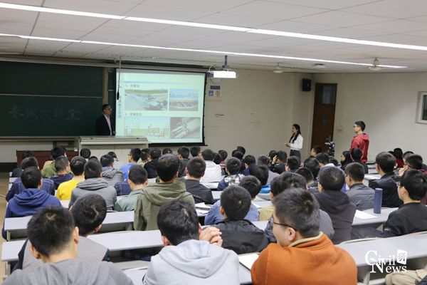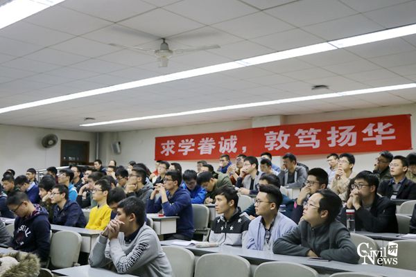本次讲座主要从五个部分展开。第一部分为地铁发展的现状,主要介绍了目前我国地铁建设的现状以及建设过程中所面临的挑战;第二部分介绍了盾构隧道的特点和盾构机的选型原则;第三部分为施工技术难点,主要围绕了刀盘刀具磨耗、刀盘面板结饼、掘进中的异常现象、穿越建(构)筑物、穿越江河地段、土压平衡盾构渣土改良六个方面进行了简单介绍;第四部分则针对成都、南京等几个城市的工程案例,更加形象地展示了施工中面临的技术难点;最后,方勇教授对盾构工法未来的发展方向进行了展望。在一个小时的演讲里,方勇教授语速平缓,思路清晰,并结合了众多工程实例,使讲解通俗易懂,引发了同学们浓厚的兴趣。