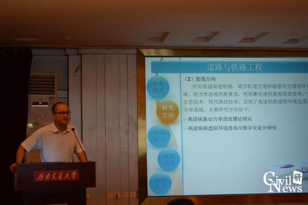 道路与铁道工程系杨荣山副教授介绍了轨道、选线、路基方向的的突出成果以及近年来研究生招生情况和就业情况;地下与隧道工程系副主任晏启祥教授对学科现状,研究方向及近几年的科研业绩和学术成果展开介绍;桥梁工程系主任李永乐教授简要介绍了芒果视频