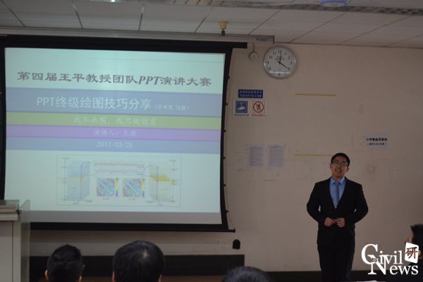 九里校区逸夫楼4309教室举行。得益于前三届演讲大赛的顺利举办,王平教授团队内部形成了互相学习提升PPT等演示文稿制作技巧的良好氛围。在开幕式致辞中,王平教授以16届硕士毕业研究生周昌盛在设计院中充分发挥PPT制作能力为例,说明了PPT制作和演讲能力在研究生学习和未来就业中发挥着重要作用,提出研究生在提升专业素养的同时,更应注重提升PPT制作和表达能力。在介绍比赛流程及评分细则后,主持人宣布比赛正式开始。