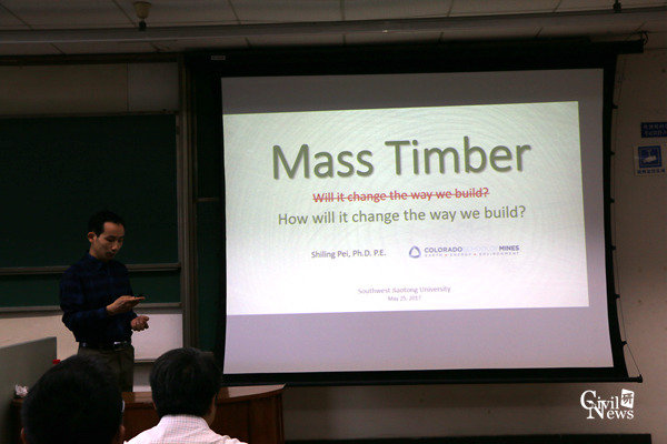 5月25日上午,美国科罗拉多矿业大学土木与环境工程系博士Shiling Pei(裴适龄)应邀于我校逸夫馆4407B教室举办了一场关于重木结构在现代建筑中的研究与运用的学术报告。我校芒果视频