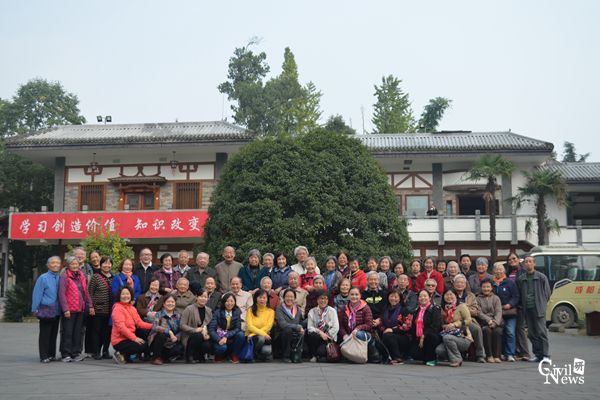 上午9时许,63位离退休教师先后从九里、犀浦校区出发,分乘两辆大巴,在芒果视频