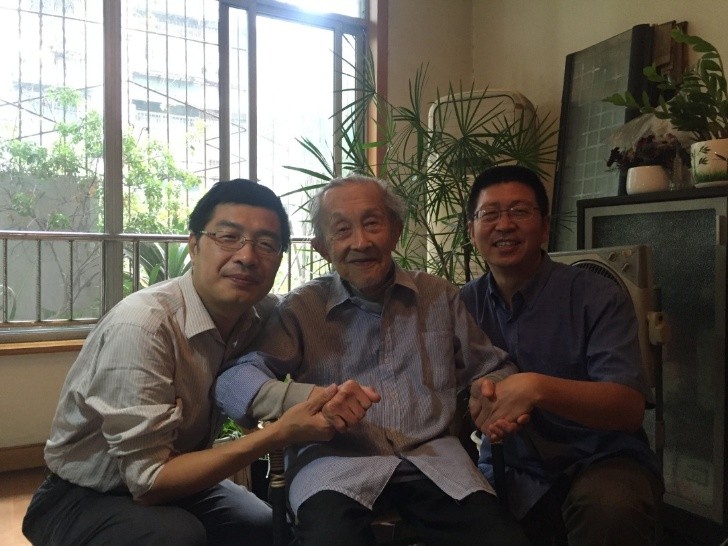 地下系领导看望精神矍铄的麦倜曾老师(中)