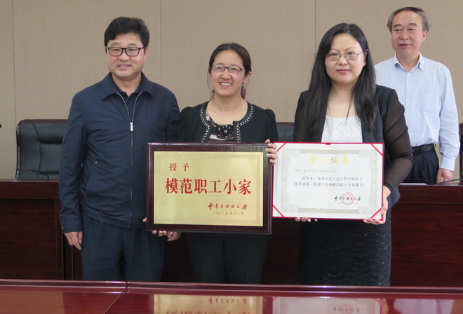 表示祝贺。随后,又向以土木学院工会为首的校级“模范教职工小家”的五个单位颁发了荣誉证书。