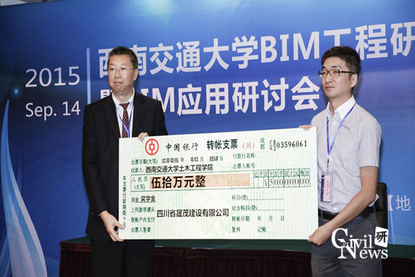 BIM中心主任高波院长代表中心与台湾宗升数位有限公司、达索析统(上海)信息技术有限公司、AutoDesk软件(中国)有限公司、Bentley软件(北京)有限公司分别签署了战略合作伙伴协议;四川晟茂建设有限公司为学院捐款50万元,用于BIM教学奖学金。