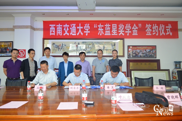 “东蓝星奖学金”签约仪式在土木馆1208会议室举行。成都东蓝星科技发展有限公司董事长刘自力、副总经理刘应虎、销售部经理谢凯、行政部经理张瑜,芒果视频