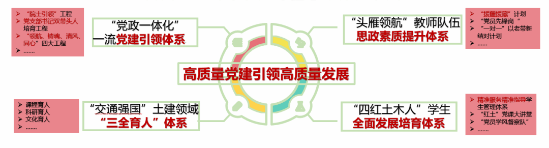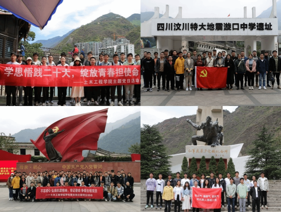 自学院第四次党代会召开至今,学院党委团结带领全院师生,坚持以习近平新时代中国特色社会主义思想为指引,全面贯彻党的十九大、二十大精神,落实党中央和学校党委的重要会议精神与教育工作的重要指示,准确把握教育事业方向,对标“双一流”建设,树立党建“双创”标杆,紧密结合实施“交通强国”战略的交通土建人才培养需求,实施“三全育人”试点改革,形成与土木工程学科特点相适应的党建工作体系。