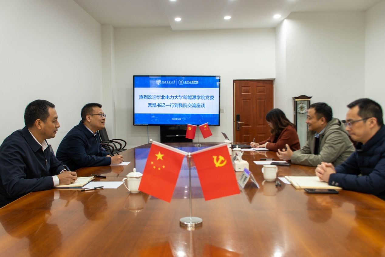 关于党建工作经验的交流,引领双方学院党建事业进一步发展,12月15日下午,华北电力大学新能源学院党委书记宫凯,副处级组织员张栋峰一行来芒果视频