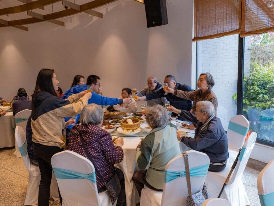 中午12点,老师们在合影留念后来到餐厅就餐。“祝福所有老师身体健康,万事如意。”共进午餐前,学院党委副书记车小洁为到场的各位老师与退休职工们送上最真挚的问候与祝福,并与各位老师热情交谈。