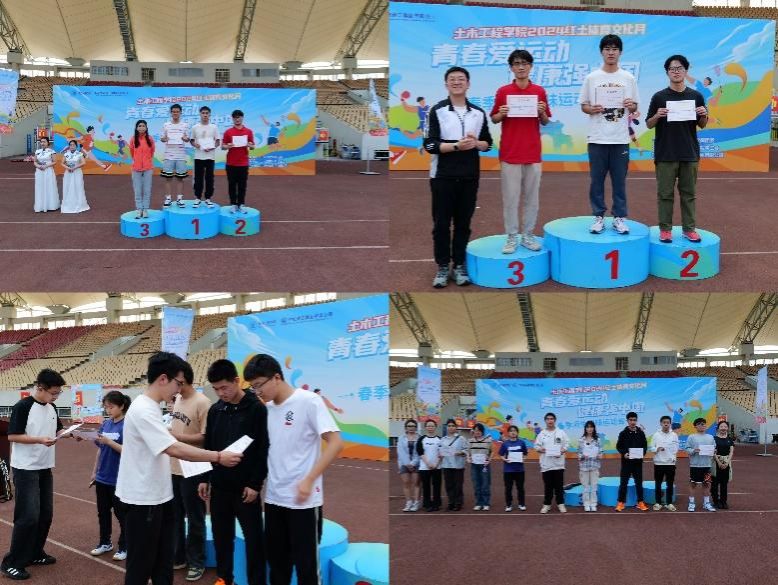 随着一天紧张激烈的比赛,运动健儿们用优异的成绩为本次的春季师生趣味运动会划上圆满的句号。2020级10班同学在“砼心协力”拔河比赛中,过五关,斩六将,最终收获冠军;白小兵同学在男子100m与400m中一骑绝尘,双双夺冠;2023级道桥2班四名同学团结一心,敢想敢做,最后凭借过硬的实力获得男子4×100m冠军;2023级土木15班黄显乐同学与2022级5班余佳雯同学分别获得了男女子铅球第一名的好成绩。