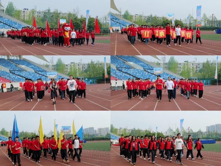 学子于操场集合整队完毕,开幕式随即正式拉开帷幕。迎着晨光,运动员们整齐列队,根据不同的专业组成方阵,跟随高扬的院旗以昂扬的姿态走过红色的跑道,洪亮的口号声响彻蔚蓝的天空。