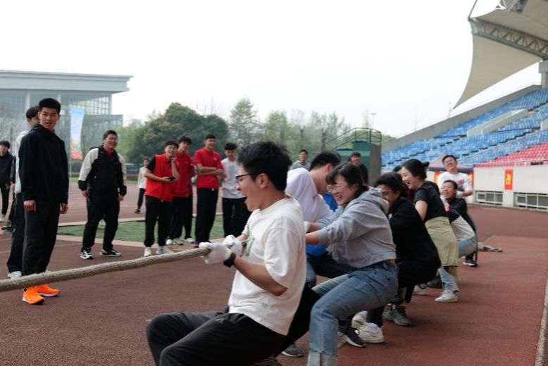 拔河赛的辅导员阵容vs大四同学队伍,究竟花落谁家?“要均匀用力,重心向后。”经过内部选拔,辅导员老师们派出了一支“智”+“力”满满的队伍,与学生组冠军土木2020-10班级队进行师生拔河友谊赛。在加油声与欢笑声中,辅导员老师队取得胜利,师生一同合影,在毕业前夕留下宝贵的纪念。