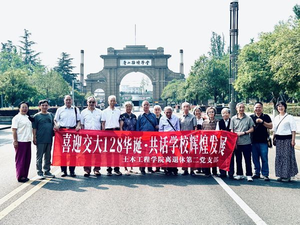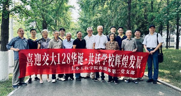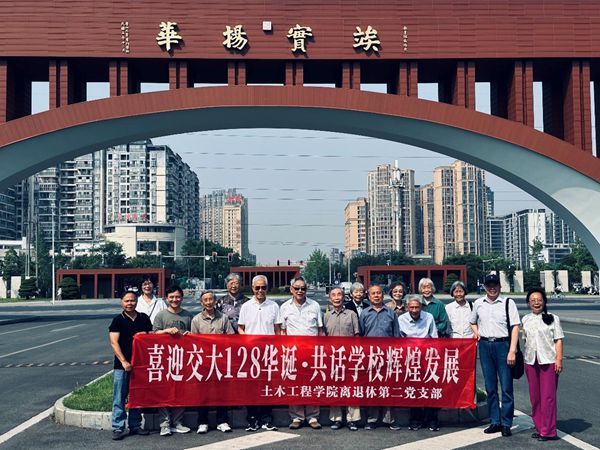 2024年5月22日早9:00土木离退休第二党支部以原校长沈大元教授、原副校长刘学信教授为表率的12名支部成员及家人准时在九里校区晚晴苑乘校车出发到犀浦校区与支部其他4位成员汇合在犀浦校区参观共览学校发展,共庆交大128华诞。