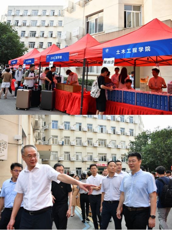 党委书记余敏明率领学校领导一行还特别前来视察迎新工作,表达了对新生的欢迎,并鼓励大家珍惜在校时光,努力学习,不断提升自己,早日成为土木工程领域的栋梁之才。