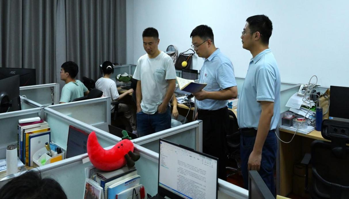 教师服务办主任甘泉、组织员熊麟也参与了本次安全大检查,并受学院党委委托,询问关心同学们生活学习动态,向各工作间的师生送上了国庆前的慰问,同时也提醒大家注意节假日期间的消防安全与出行安全。