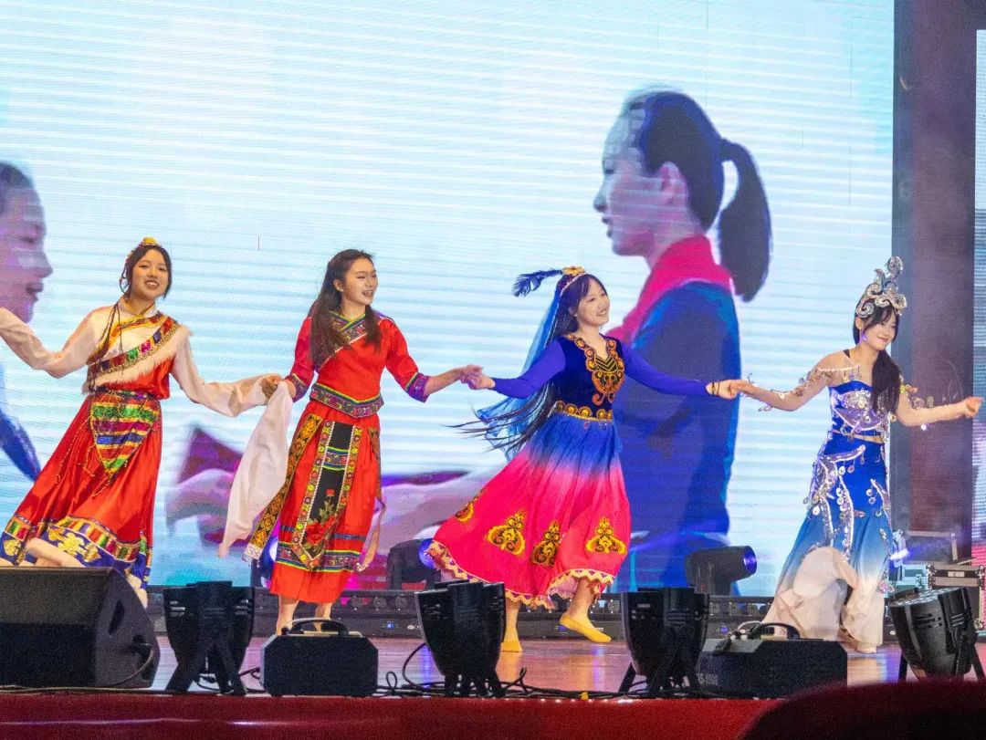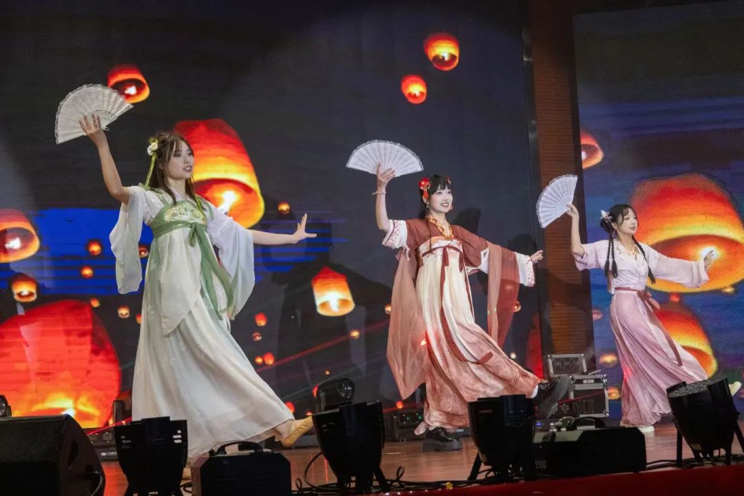 大学生艺术团-氧气舞蹈团舞蹈《爱我中华》通过优美的舞姿,展现了中华儿女对祖国的热爱和祝福,带领全场观众沉浸在浓烈的爱国氛围中。