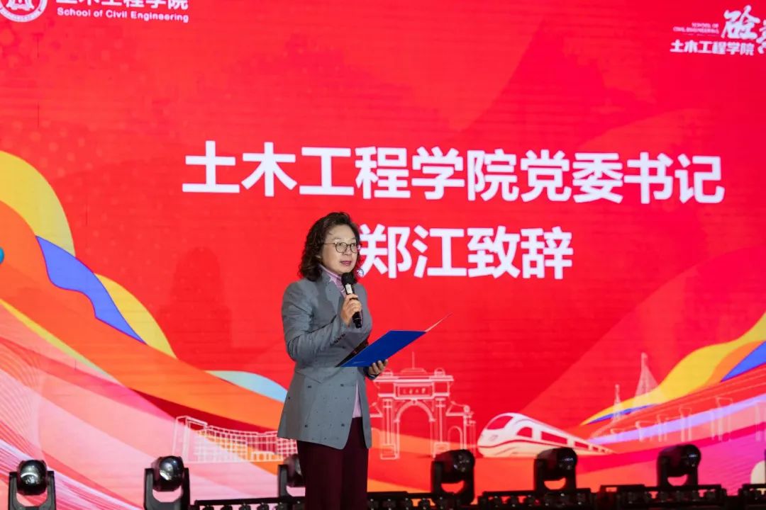 郑江书记代表学院致辞。郑江书记表示土承其上,木稳其基,土木结合喻示着无限可能,希望同学们心怀国家、挺膺担当,将个人理想融入国家发展;持之以恒、自律自强,驾驶时光之舟实现梦想;全面发展,追求卓越,成为德智体美劳全面发展的社会主义建设者和接班人,祝福同学们在交大学有所成、得皆所愿。