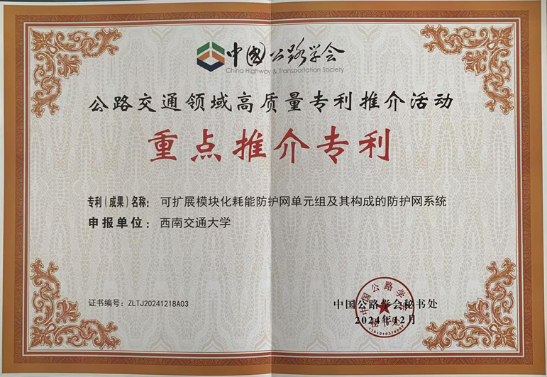 余志祥教授团队发明专利“可扩展模块化耗能防护网单元组及其构成的防护网系统”脱颖而出,入选重点推介专利。