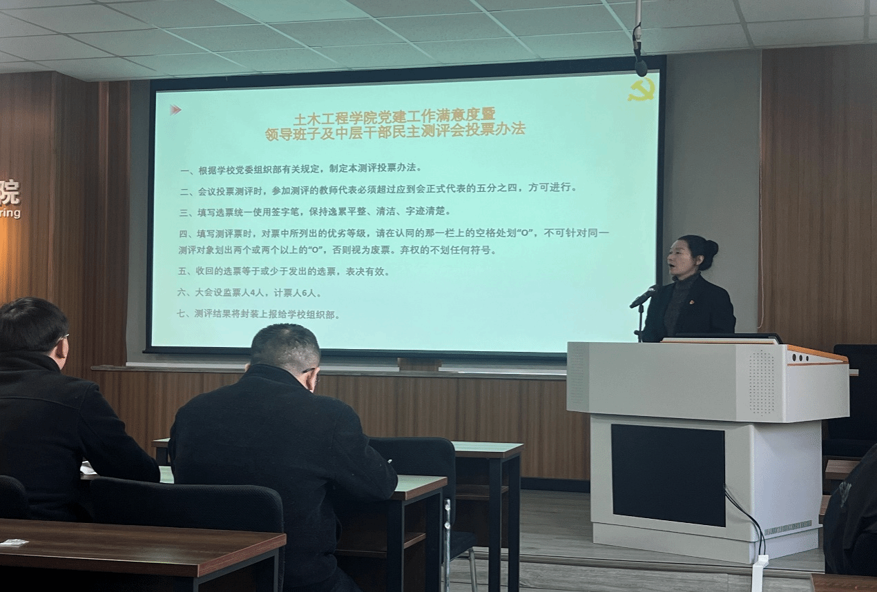 参会人员采用无记名投票的方式,分别对学院党建满意度、领导班子及中层领导干部进行民主测评,并现场开箱清点测评票进行统计,统计结果按要求上报学校党委组织部。