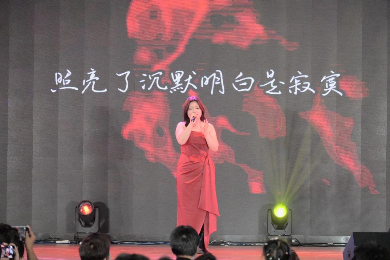 刘思彤,来自人文学院。“我们的爱,过了就不再回来”,她用极具感染力的剧情演绎了《我们的爱》,在静默中泛起潮声,欢呼与旋律共振。