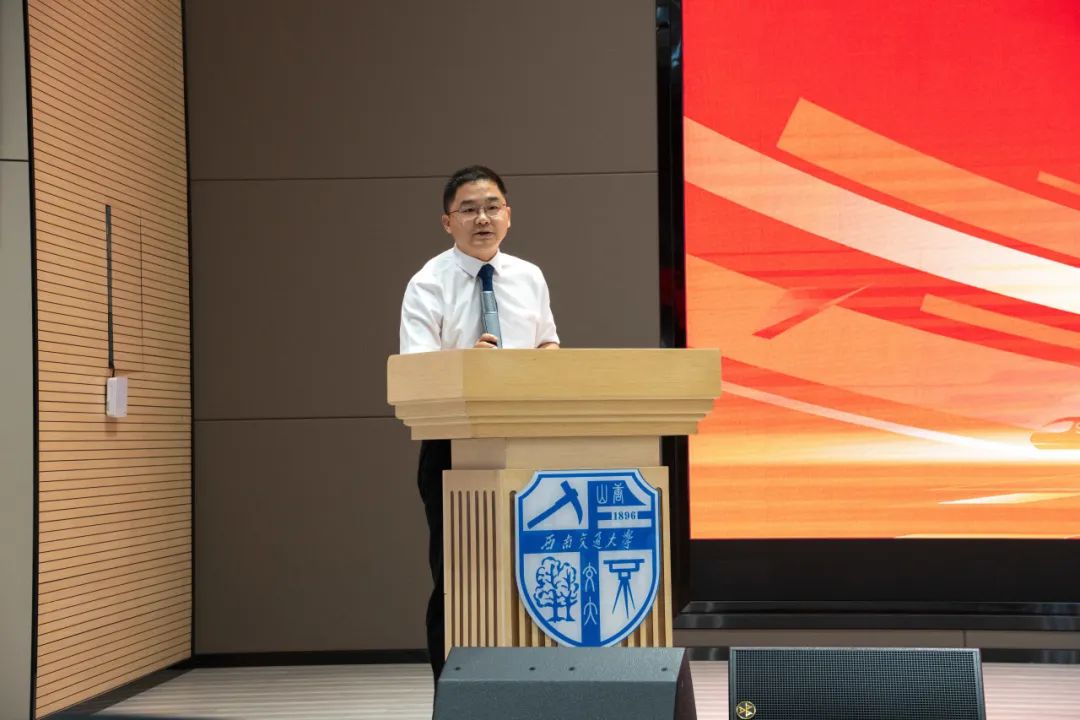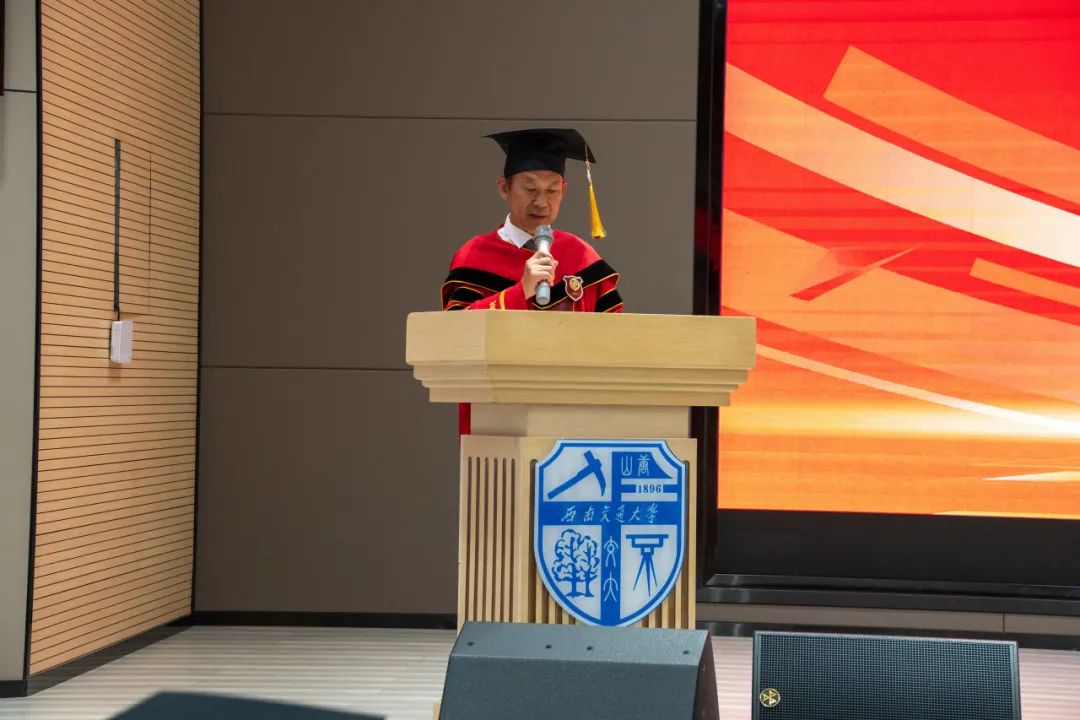 议程第二项:蒲黔辉院长致辞。致辞中,蒲院长向毕业生致以热烈祝贺,并深情回顾了同学们在交大土木学院的成长历程。蒲院长寄语同学们:一要终身学习,做创新变革的先行者;二要学会坚韧,做直面挑战的孤勇者;三要融入时代,做建功立业的奋斗者。