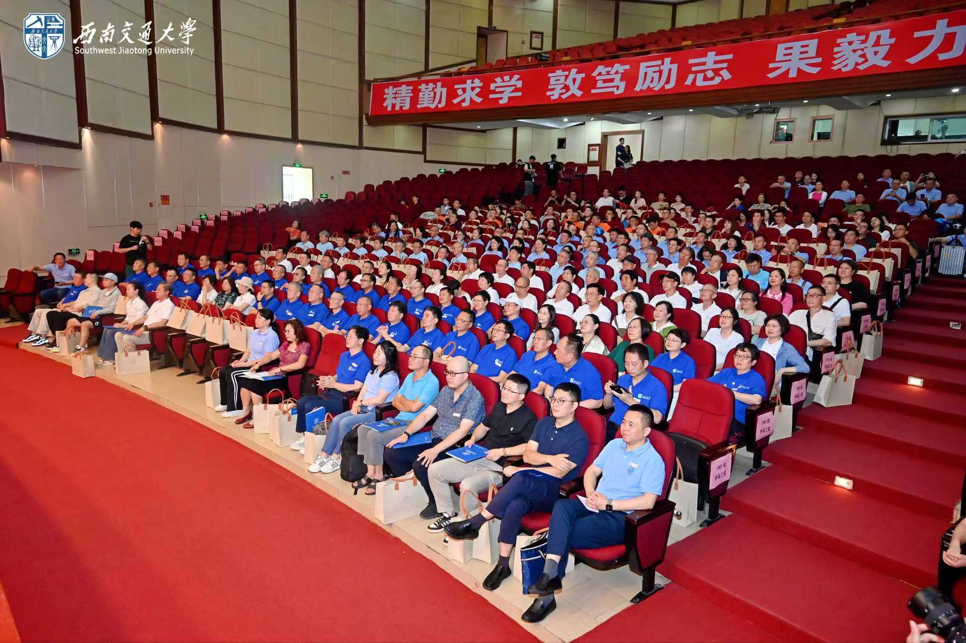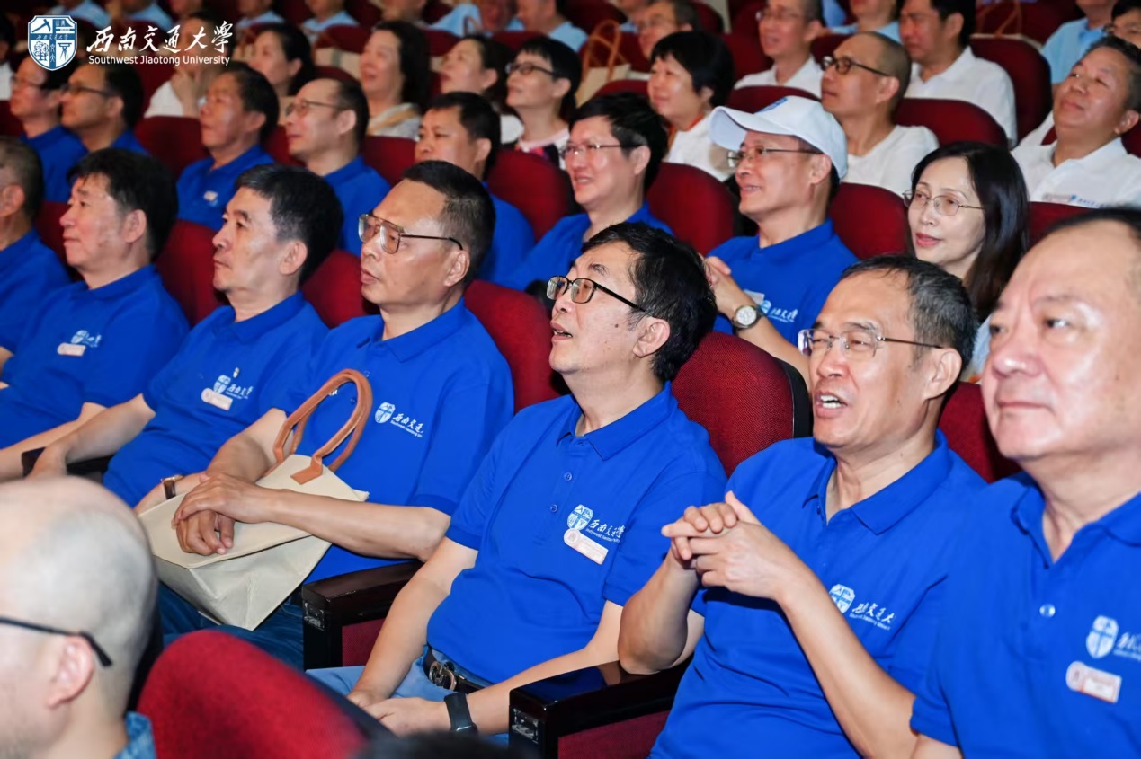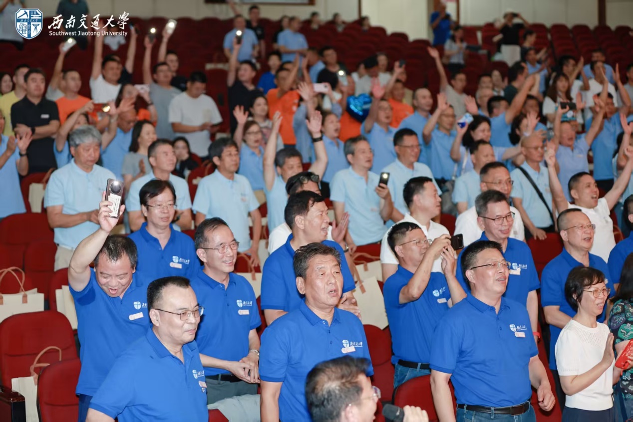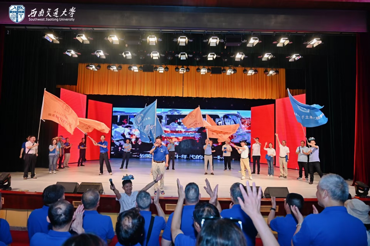 随后,12位来自1981级桥梁、铁道、隧道、工民建各专业,1990年代、2000年代、2010年代和2020级历届土木校友代表,集体朗诵了1981级桥梁专业庄勇原创诗歌《栋梁赞歌——跨世纪交大人的光阴答卷》。“报国寺的晨钟敲醒黎明,中山梁跑道的汗水浸满足印,青春随奋进的鼓点擂响”“若光阴逆流而上,若青春再度启航,我们仍会,义无反顾,选择交大;以山为砧,以血淬火,用生命锻成中国铁路最坚韧的钢梁!”赞歌齐诵,回荡会场,每一句都是交大土木人团结一心、奉献社会的精神传承,激荡起全场对行业使命的共鸣与自豪感。