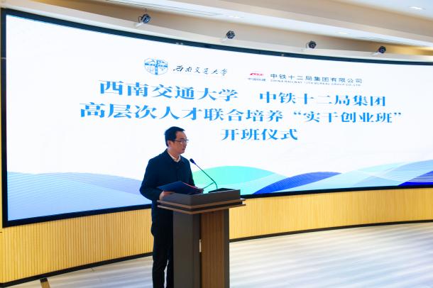 12月3日下午,学校与中铁十二局集团在犀浦校区“双一流”会议中心数字孪生互动教学中心举行高层次人才联合培养“实干创业班”开班仪式。中铁十二局集团党委委员、副总经理王栋,芒果视频