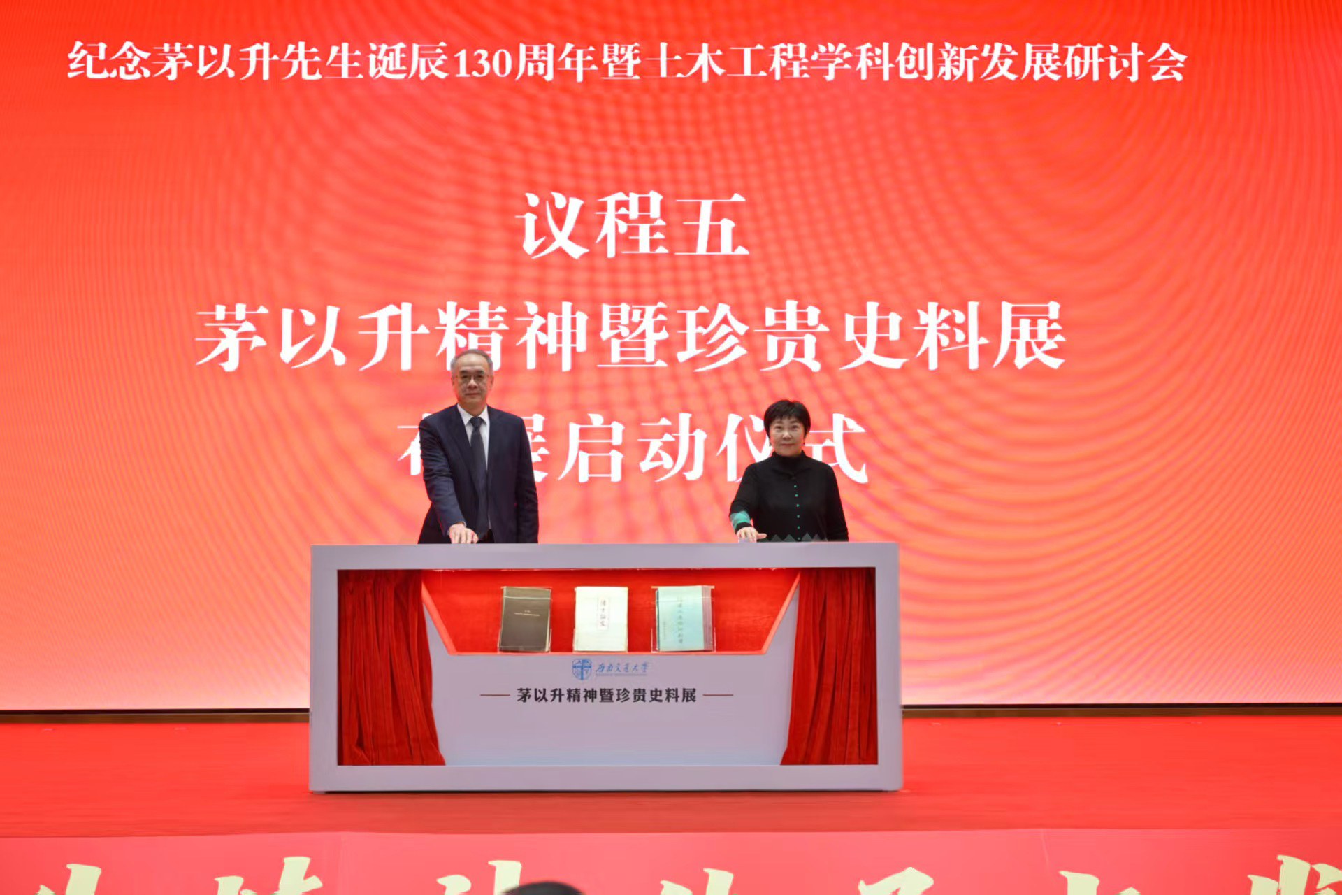 现场举行“茅以升精神暨珍贵史料展”启动仪式。余敏明、茅玉麟共同为布展揭幕。现场展柜展示茅以升先生“博士论文答辩本原件”“康奈尔大学硕士论文原件”和“《钱塘江建桥计划书》原件”三本珍贵史料,其中博士论文答辩本为国内孤本,也是首次在国内公开展示。这些文献见证并辉映着茅以升先生求学报国、笃行建功的光辉一生,具有独一无二的学术价值与精神力量。后续,以茅以升珍贵史料为核心的“茅以升精神暨珍贵史料展”将在芒果视频