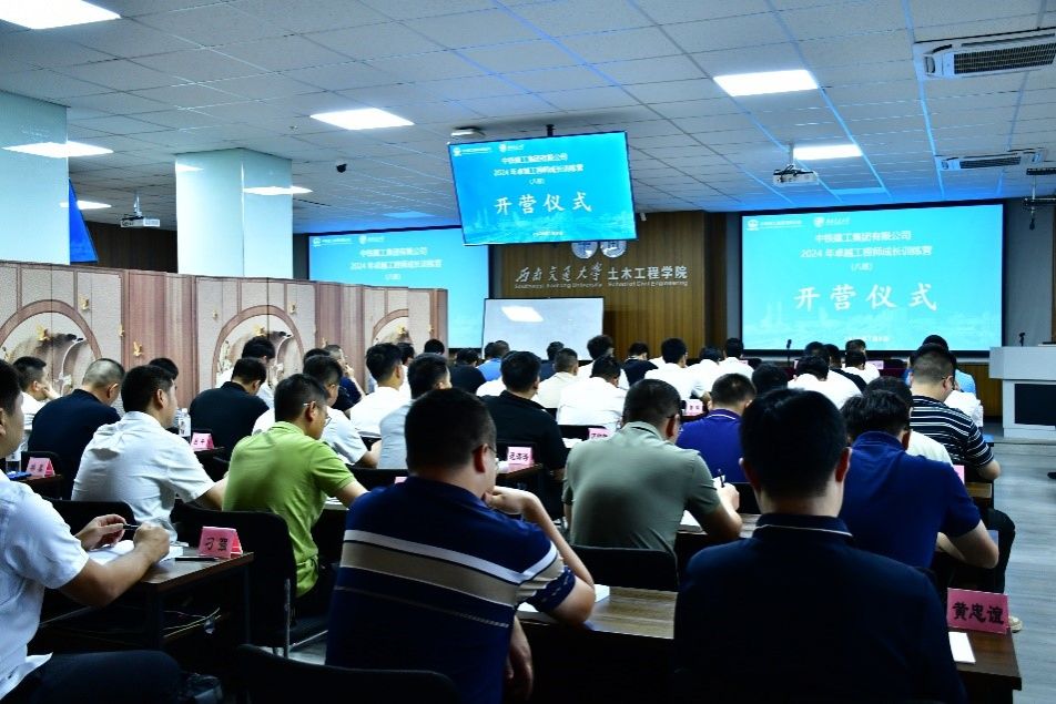 2024年7月9日上午8:30,中铁建工集团有限公司2024年卓越工程师成长训练营开营仪式在九里校区土木馆1234教室顺利举行。出席本次开营仪式的有:中铁建工集团有限公司人力资源部高级主管周英波、中铁建工集团有限公司西南分公司人力资源部邴永多、芒果视频