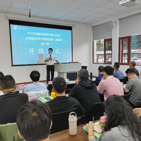 10月14日上午,国铁集团劳动和卫生部2025年工务专业专职师资培训班(第一期)开班典礼在九里校区土木馆1118教室举行。我院知识更新教育中心全体教师及本次参培学员参加了开班典礼。典礼由班主任金虎老师主持,知识更新教育中心主任张迅出席开班典礼并致辞。